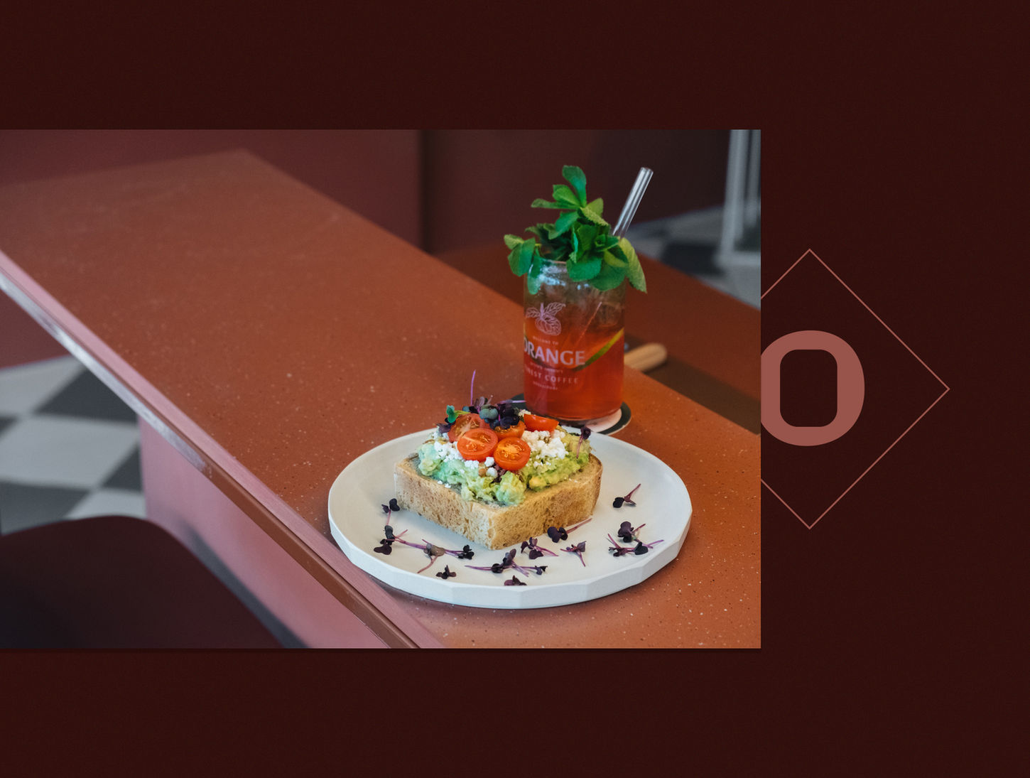Der Name "Orange" bezieht sich auf eine Stadt in Australien. Australien ist bekannt für eine qualitativ hochwertige Kaffeeszene. Daher fügen wir die Koordinaten der Stadt zu den Hauptelementen des Brandings hinzu. Wir haben mit der Innenarchitektin Bianca Timmermann zusammengearbeitet. Dabei war es uns sehr wichtig, dass die grafischen Elemente und das Innenraumkonzept gut zusammenpassen und ein einheitliches Erscheinungsbild ergeben.